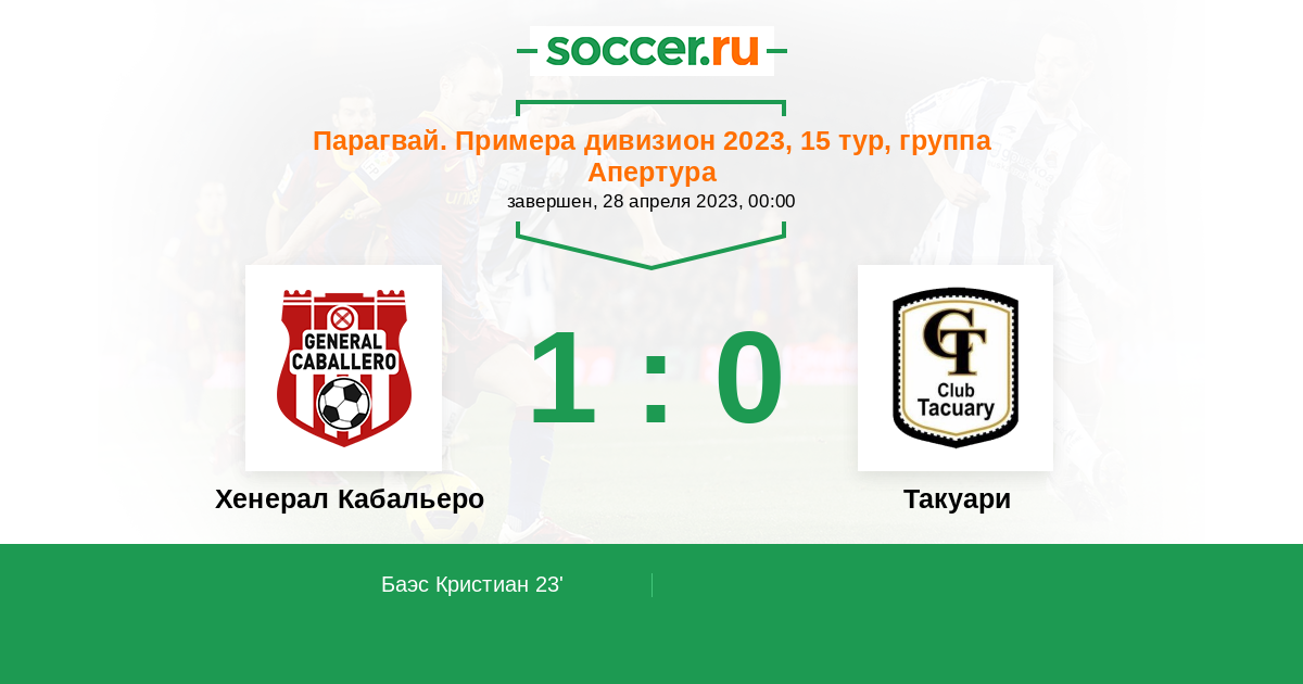 | Хенерал Кабальеро | 36:39 | 18:15 | 18:24 |