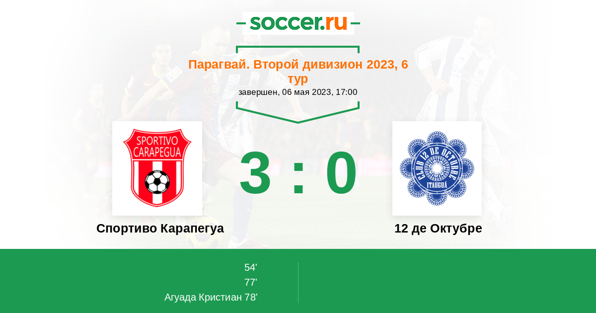 | Спортиво Карапегуа | 3:2 | 0:0 | 3:2 |