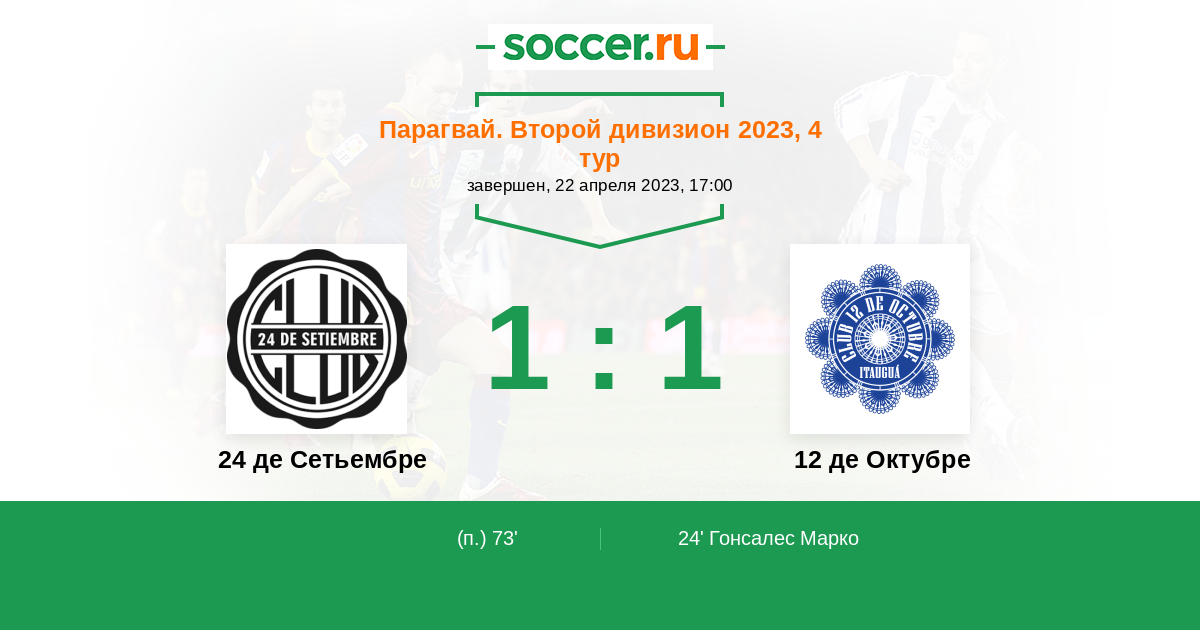 | Парагвай. Второй дивизион | 1 | 0 | 1 | 0 |