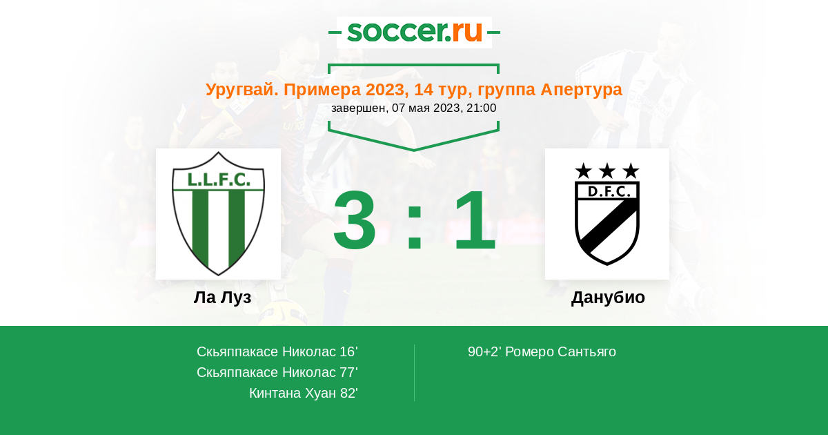 | Данубио | 4:1 | 2:1 | 2:0 |