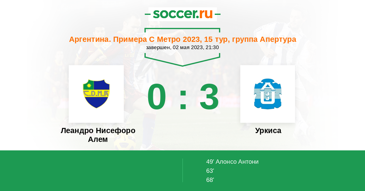 | Леандро Нисефоро Алем | 1:5 | 0:1 | 1:4 |