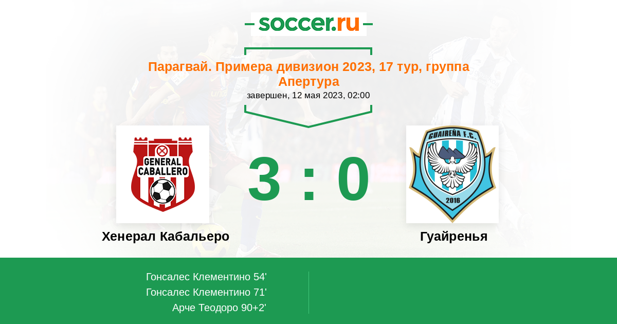 | Хенерал Кабальеро | 10:15 | 3:2 | 7:13 |