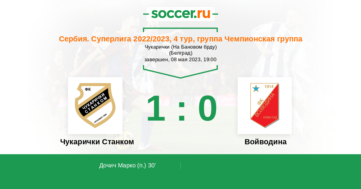 Последние 5 игр дома Чукарички Станком