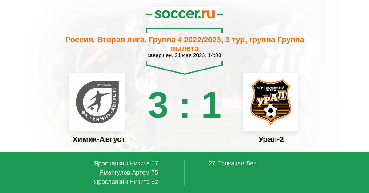 | Химик-Август | 7:3 | 3:2 | 4:1 |