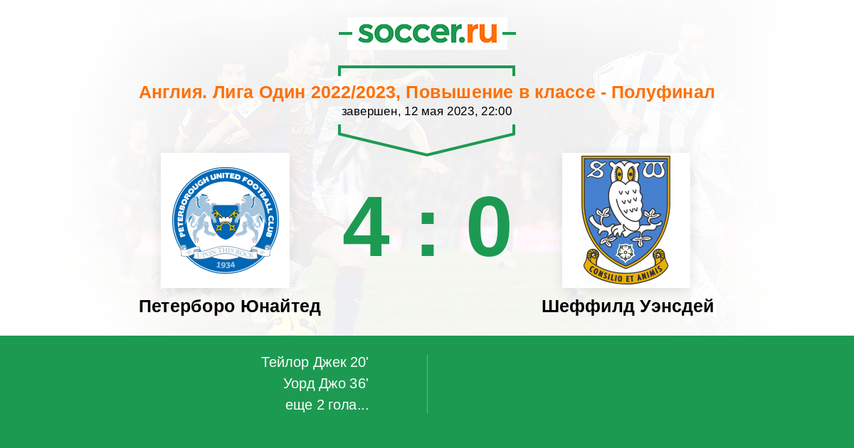 | Петерборо Юнайтед | Шеффилд Уэнсдей | |