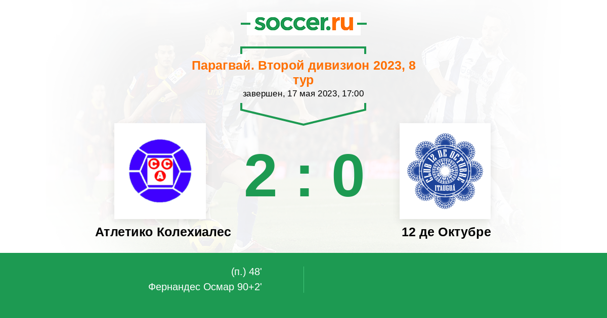 | Атлетико Колехиалес | 3:0 | 0:0 | 3:0 |