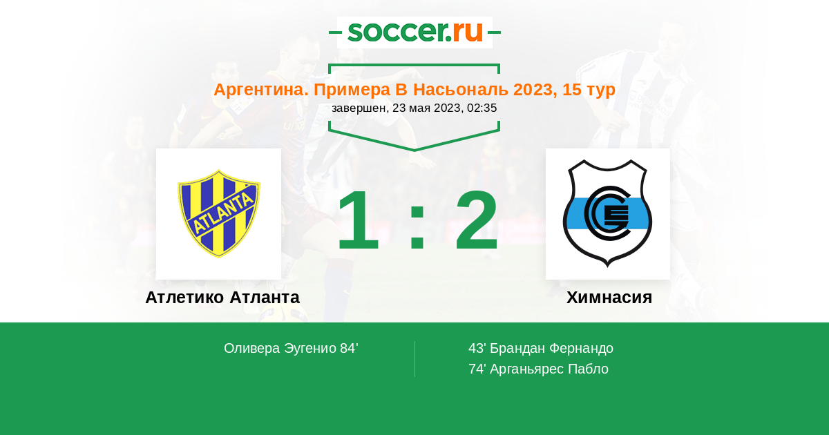 | Атлетико Атланта | Химнасия | |