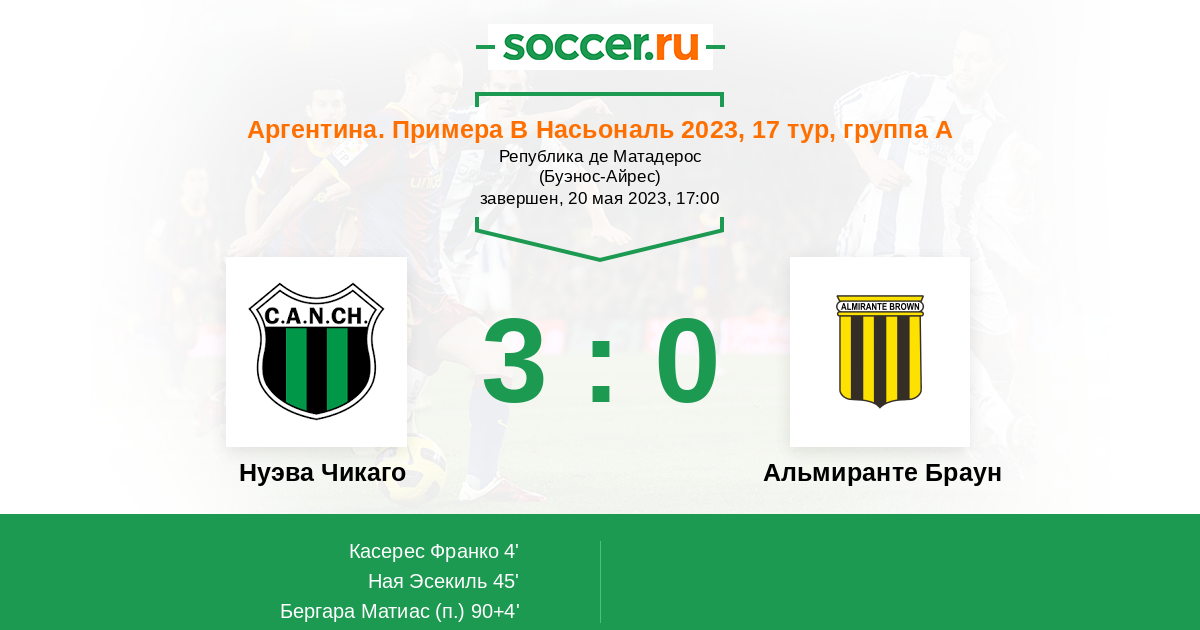 | Нуэва Чикаго | Альмиранте Браун | |