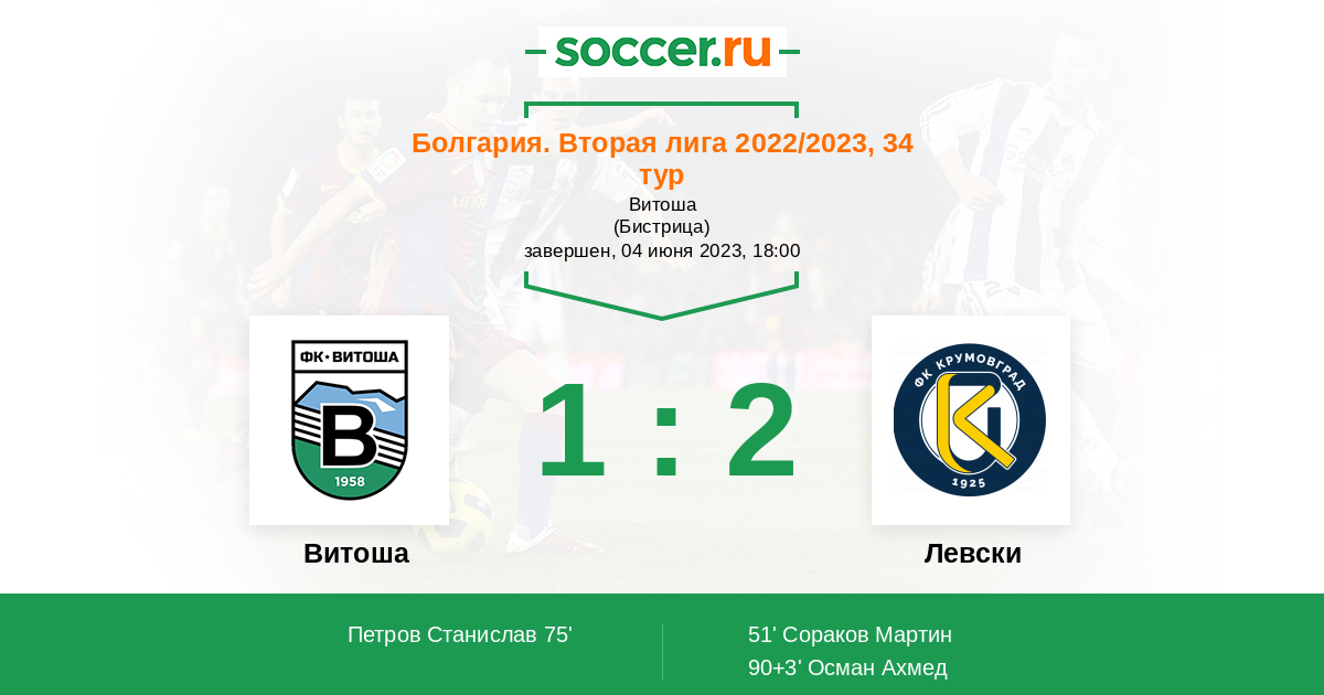 | Витоша | 2:3 | 0:0 | 2:3 |