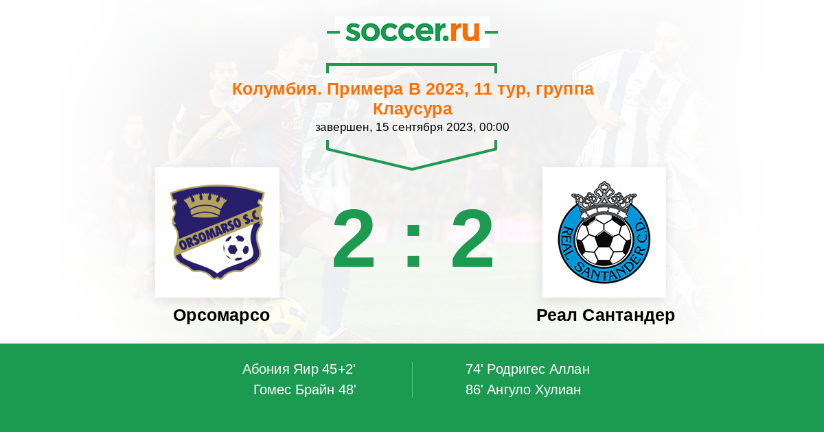 | Орсомарсо | 24:20 | 16:9 | 8:11 |