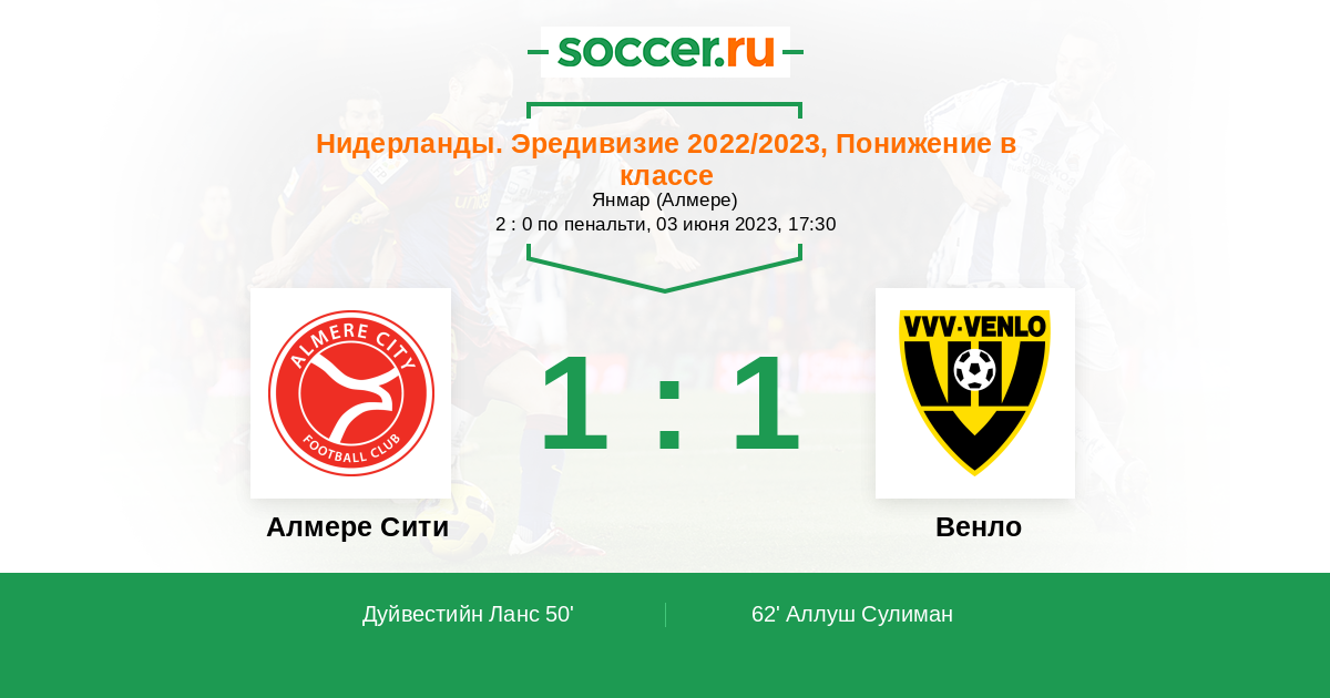 | Алмере Сити | 27:55 | 15:29 | 12:26 |