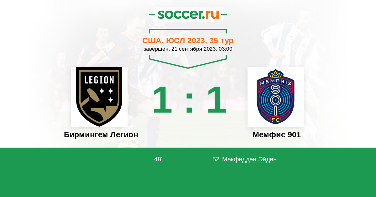 | Бирмингем Легион | Мемфис 901 | |