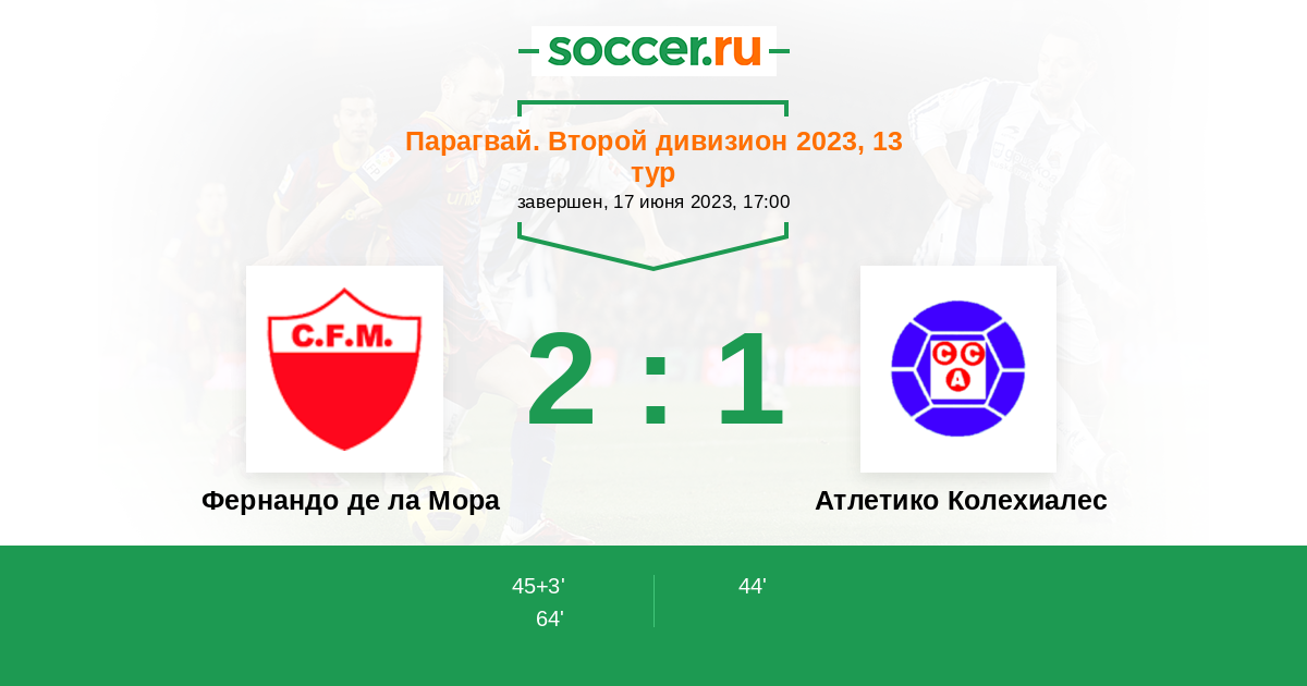 | Атлетико Колехиалес | 7:26 | 3:10 | 4:16 |