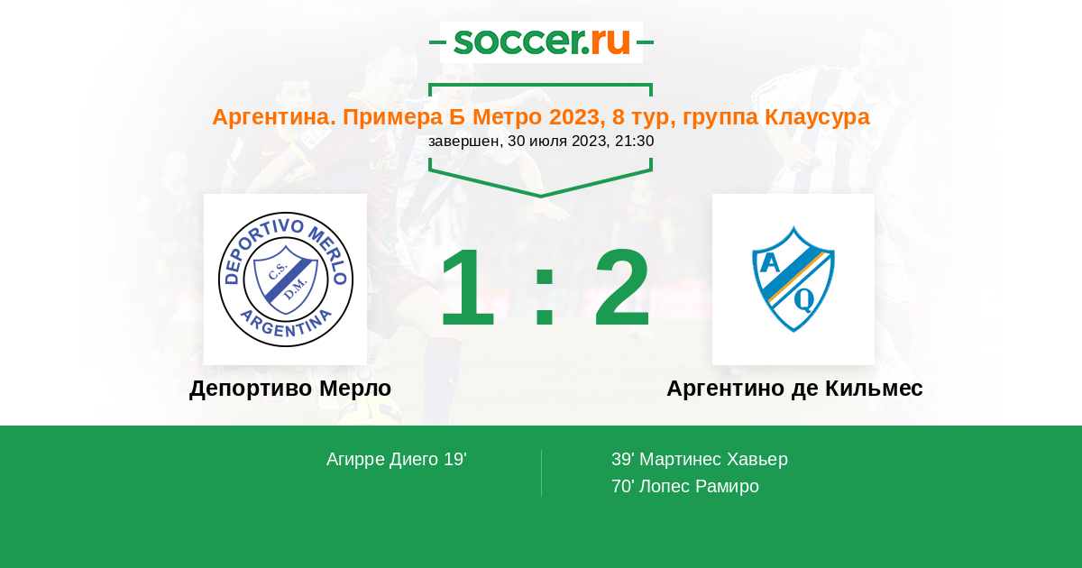 | Депортиво Мерло | Аргентино де Кильмес | |