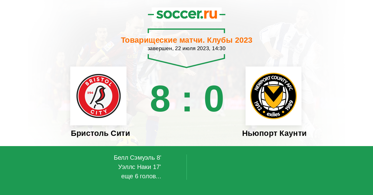 | Бристоль Сити | 3:0 | 3:0 | 0:0 |