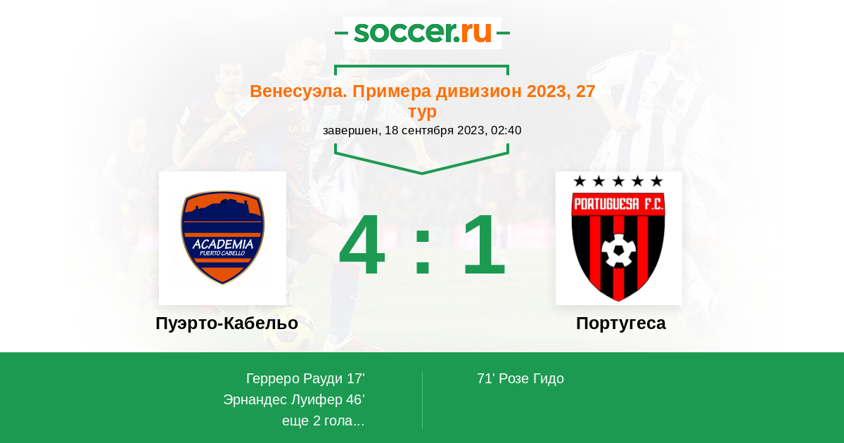 | Пуэрто-Кабельо | 22:14 | 7:6 | 15:8 |