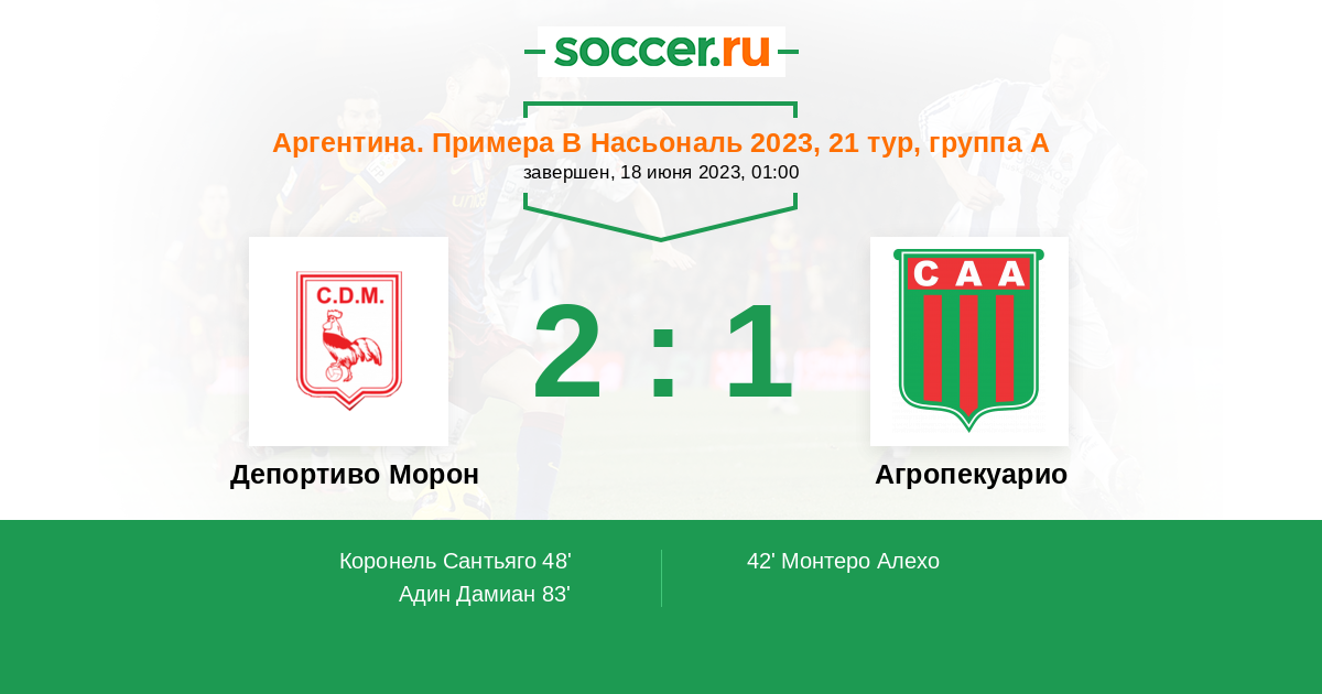 | Депортиво Морон | Агропекуарио | |