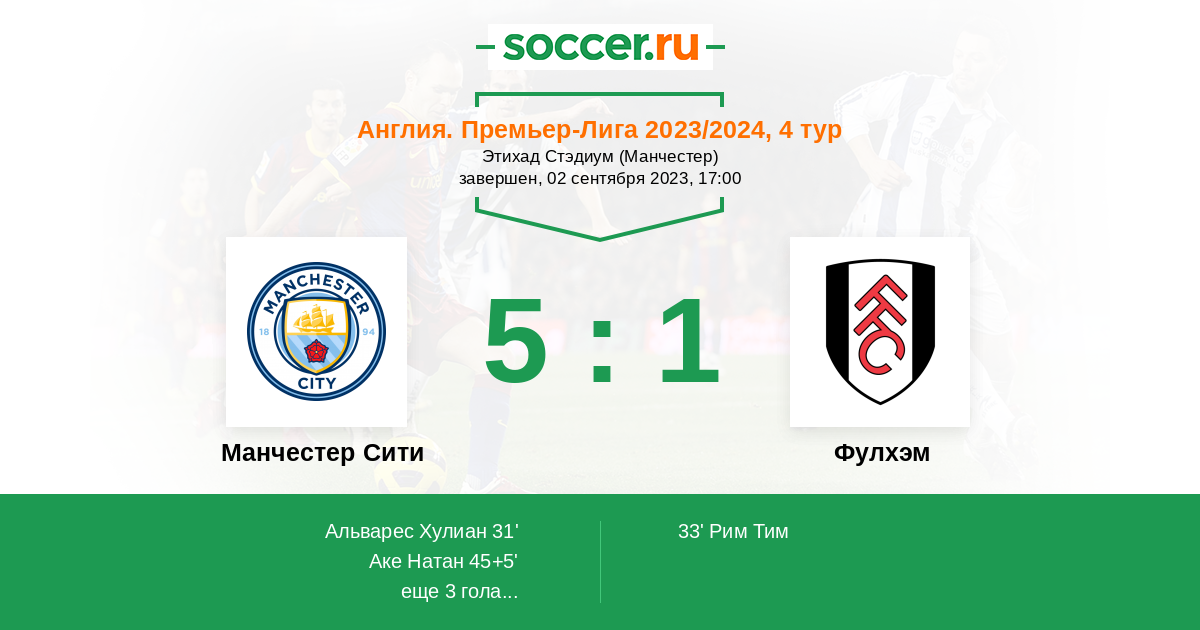 | Манчестер Сити | Фулхэм | |