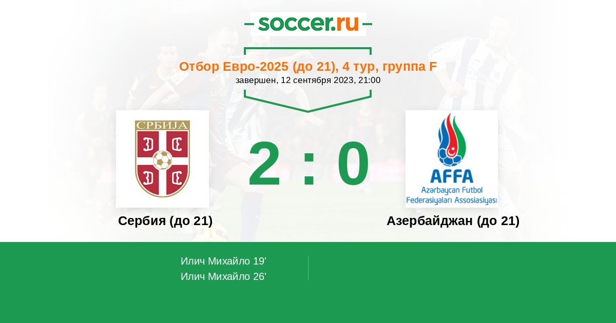 | Сербия (до 21) | Азербайджан (до 21) | |