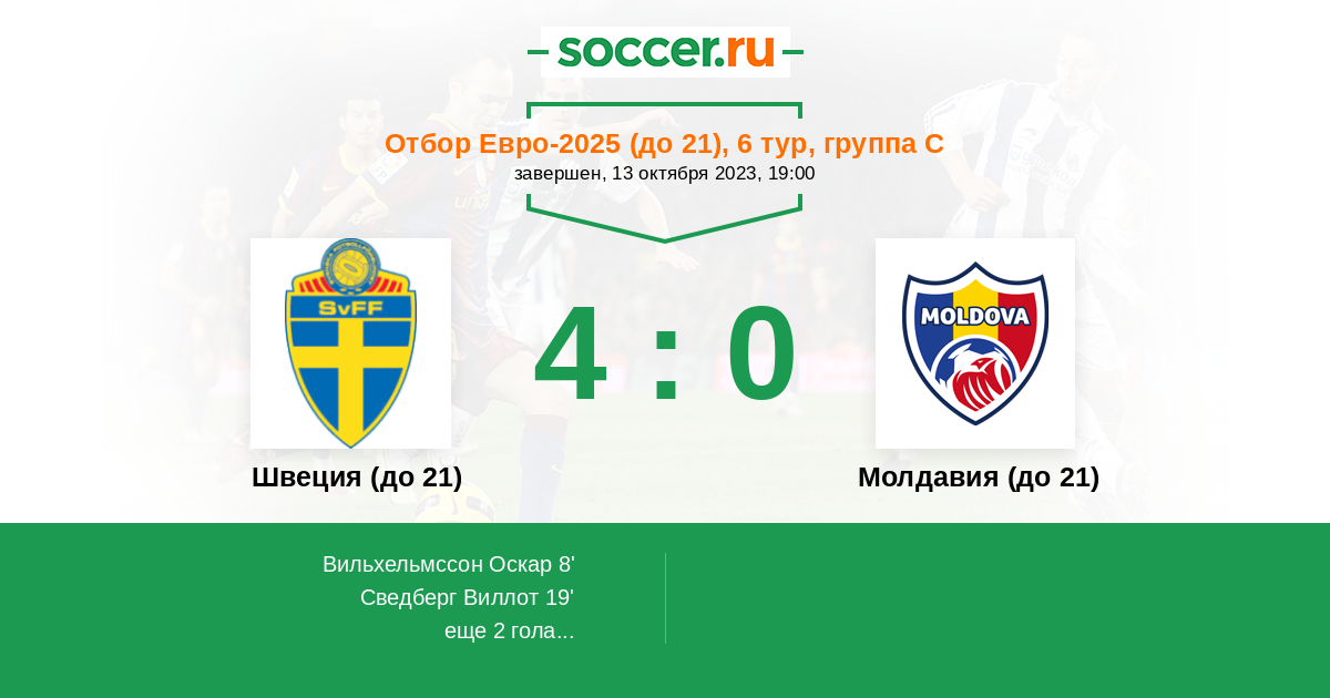 | Швеция (до 21) | Молдавия (до 21) | |