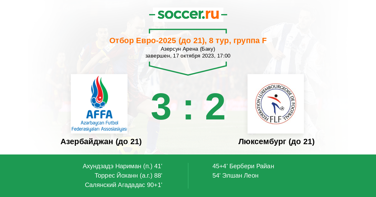| Азербайджан (до 21) | Люксембург (до 21) | |