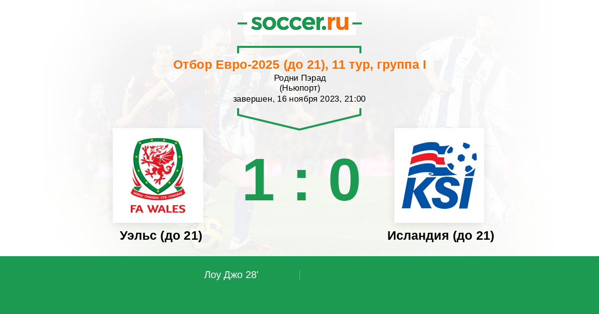 | Уэльс (до 21) | Исландия (до 21) | |