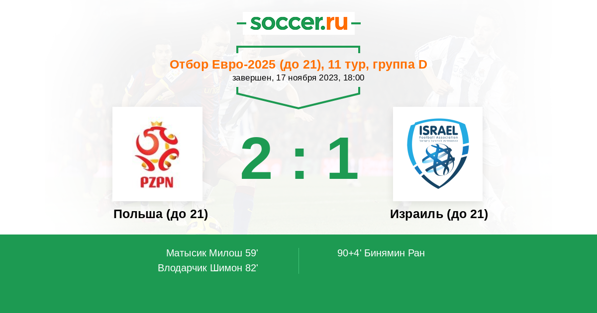 | Израиль (до 21) | 5:5 | 3:4 | 2:1 |