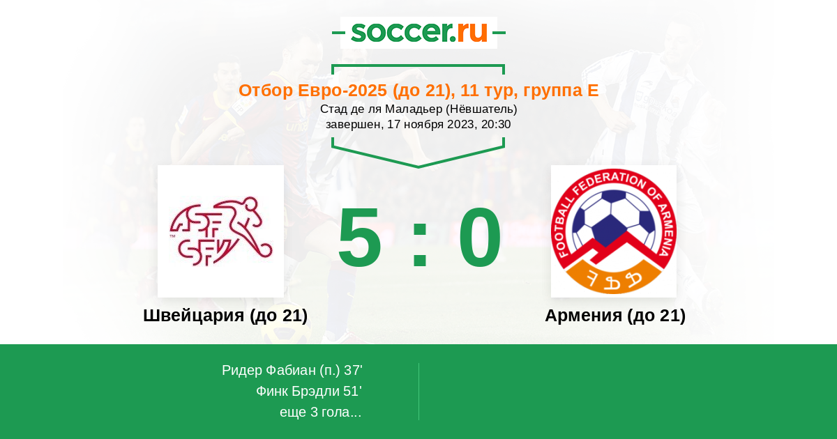 | Швейцария (до 21) | Армения (до 21) | |