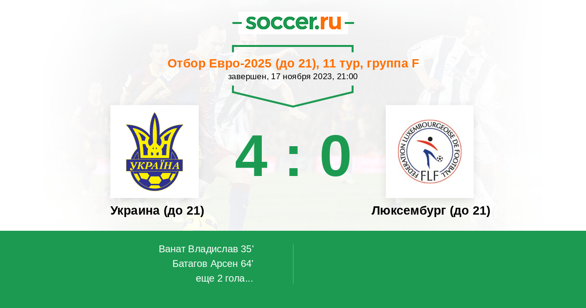| Люксембург (до 21) | 0:3 | 0:3 | 0:0 |