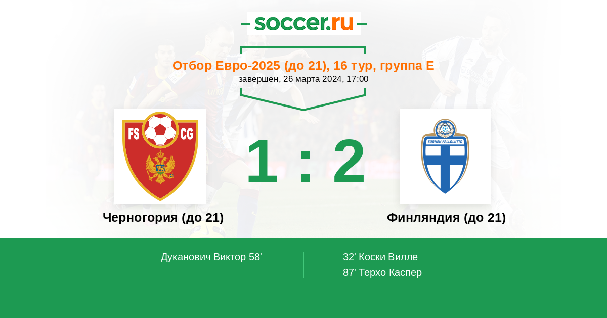 | Черногория (до 21) | Финляндия (до 21) | |