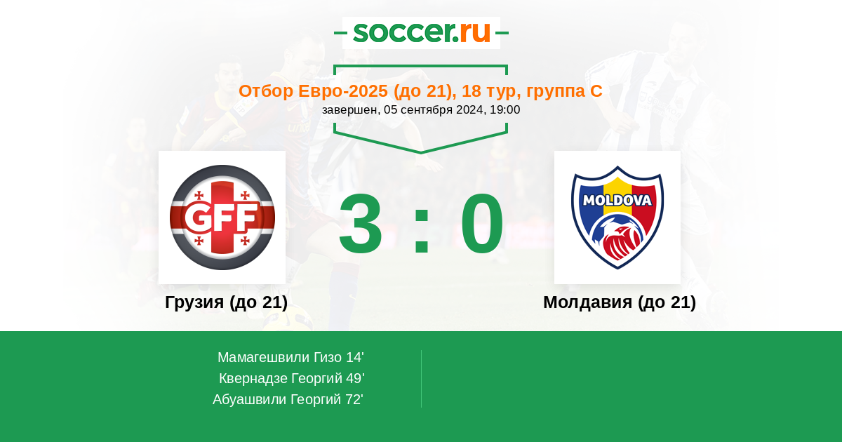 | Грузия (до 21) | 1:0 | 0:0 | 1:0 |
