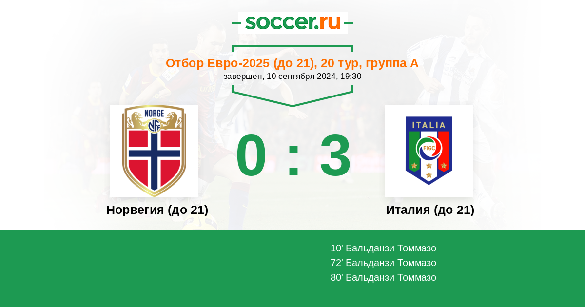 | Норвегия (до 21) | Италия (до 21) | |