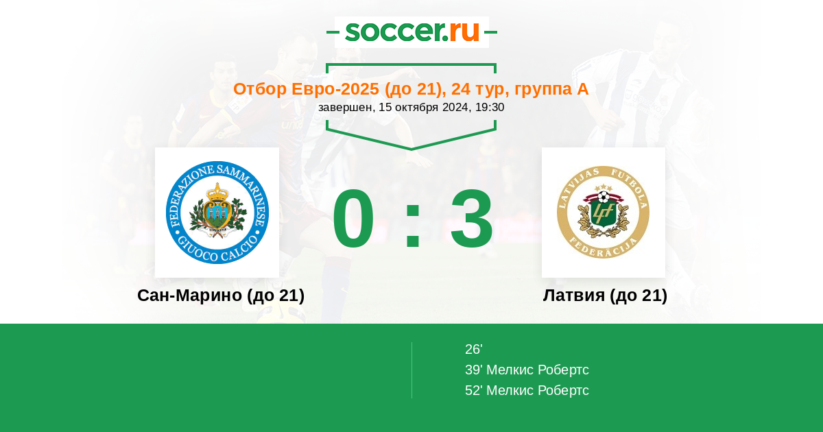 | Сан-Марино (до 21) | Латвия (до 21) | |