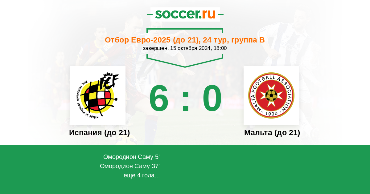 | Испания (до 21) | Мальта (до 21) | |