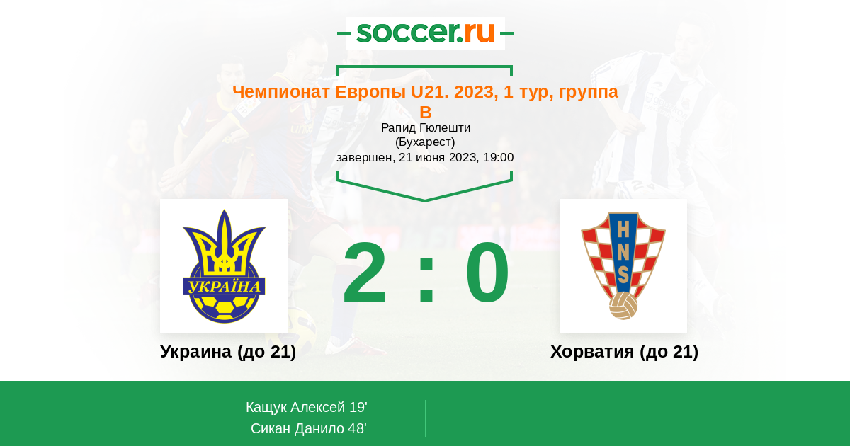 | Хорватия (до 21) | 1:0 | 1:0 | 0:0 |