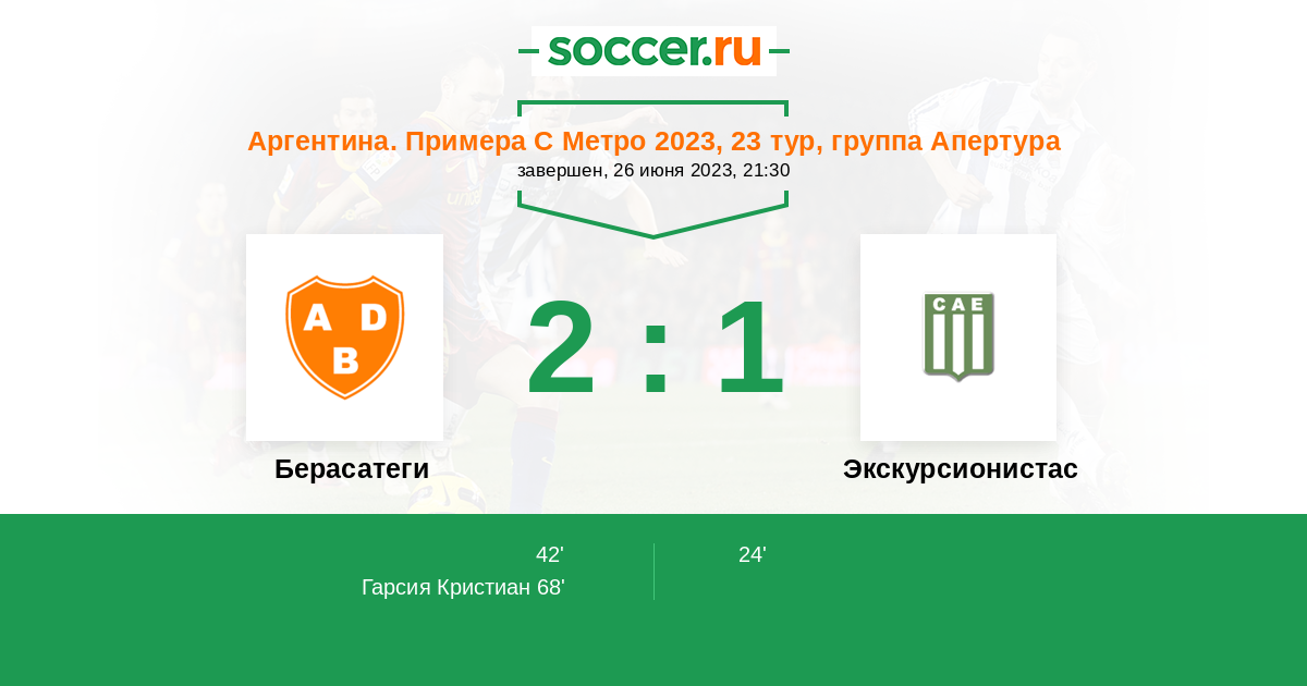 | Аргентина. Примера С Метро | 27 | 10 | 9 | 8 |