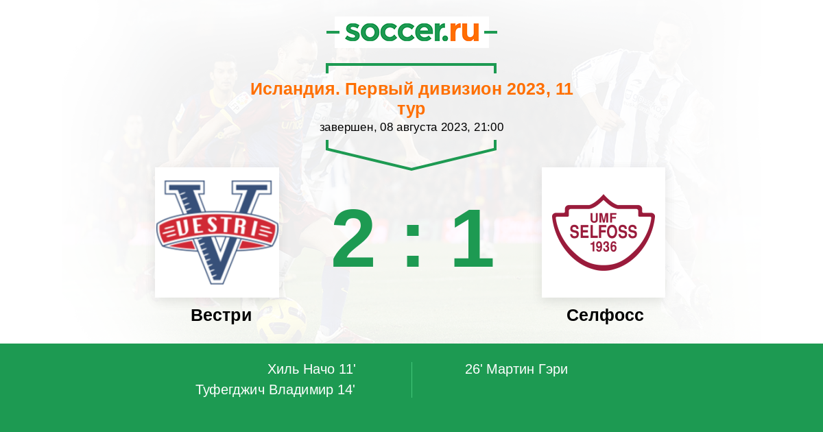 | Селфосс | 6:13 | 2:8 | 4:5 |