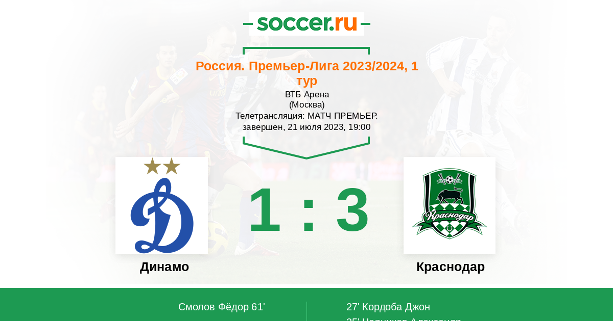 Краснодар 3:0 Динамо