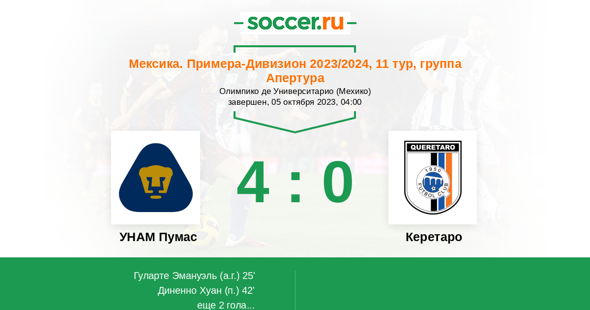 | УНАМ Пумас | 58:50 | 32:15 | 26:35 |