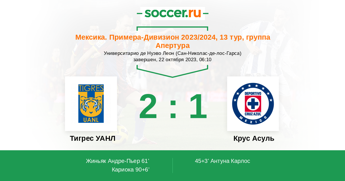 | Крус Асуль | 61:54 | 28:25 | 33:29 |