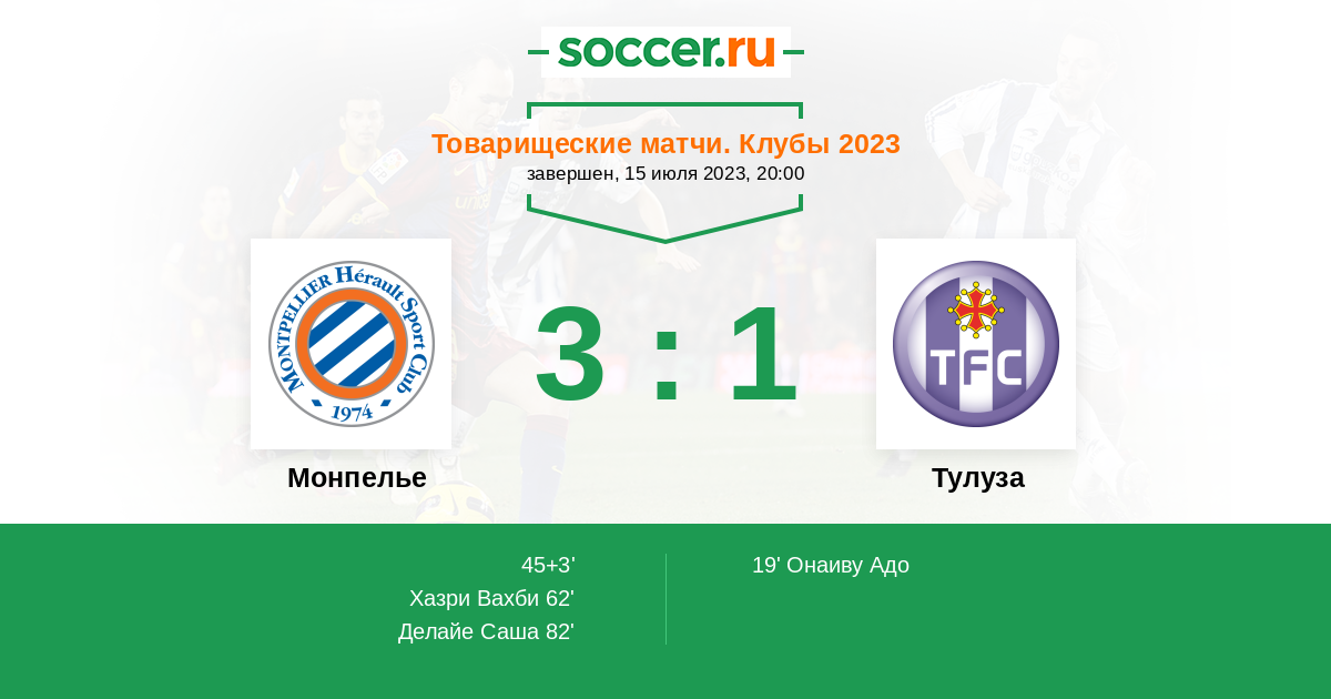 | Монпелье | 50:34 | 28:16 | 22:18 |