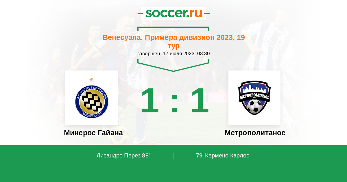| Минерос Гайана | 17:29 | 13:5 | 4:24 |