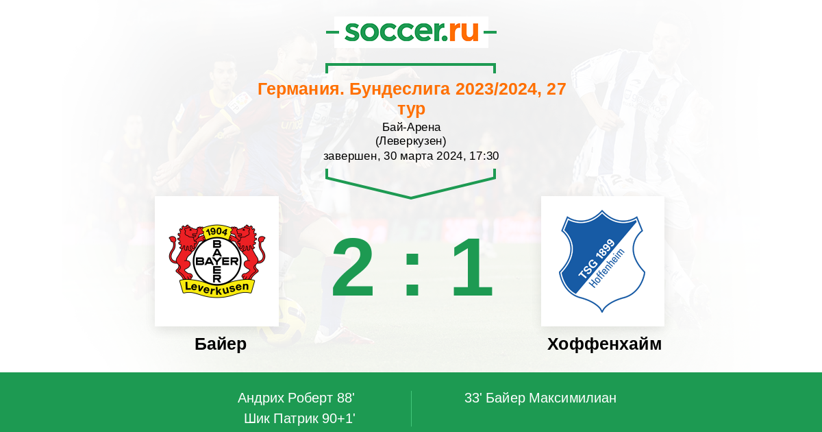 | Хоффенхайм | 45:70 | 20:36 | 25:34 |