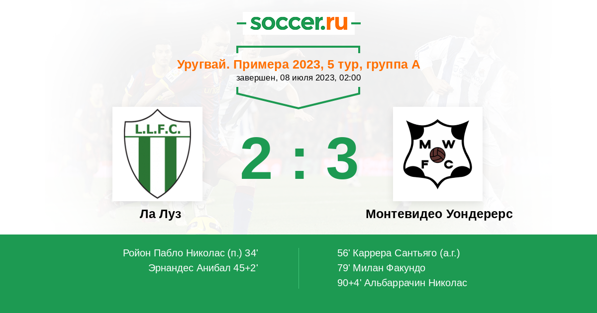 | Ла Луз | Монтевидео Уондерерс | |