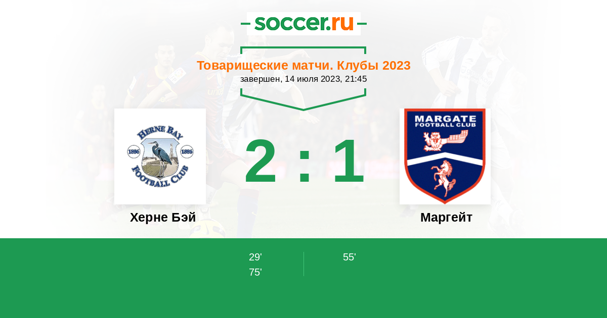 | Маргейт | 2:0 | 2:0 | 0:0 |