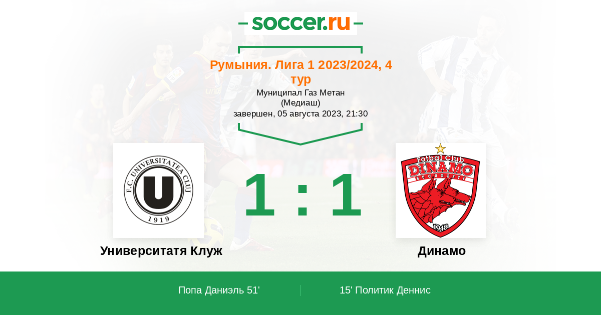 | Университатя Клуж | Динамо | |
