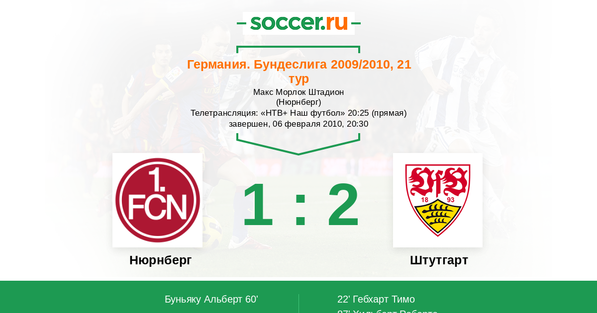Нюрнберг, Макс Морлок Штадион Телетрансляция: "НТВ+ Наш футбол" 20:25 (прямая)