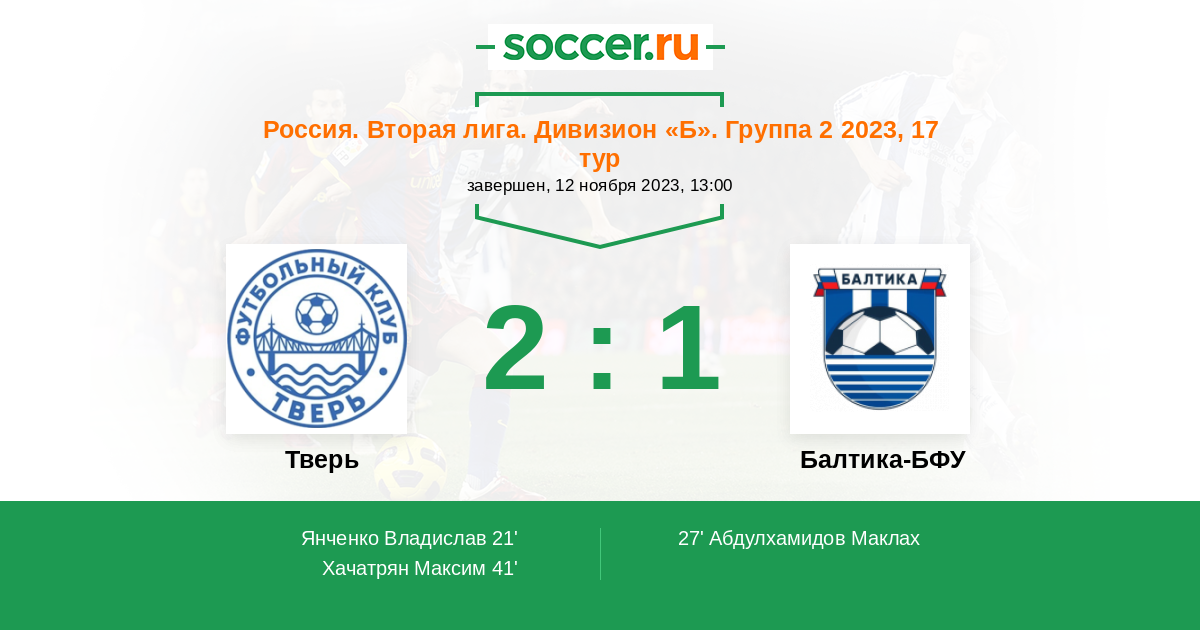 | Тверь | Балтика-БФУ | |
