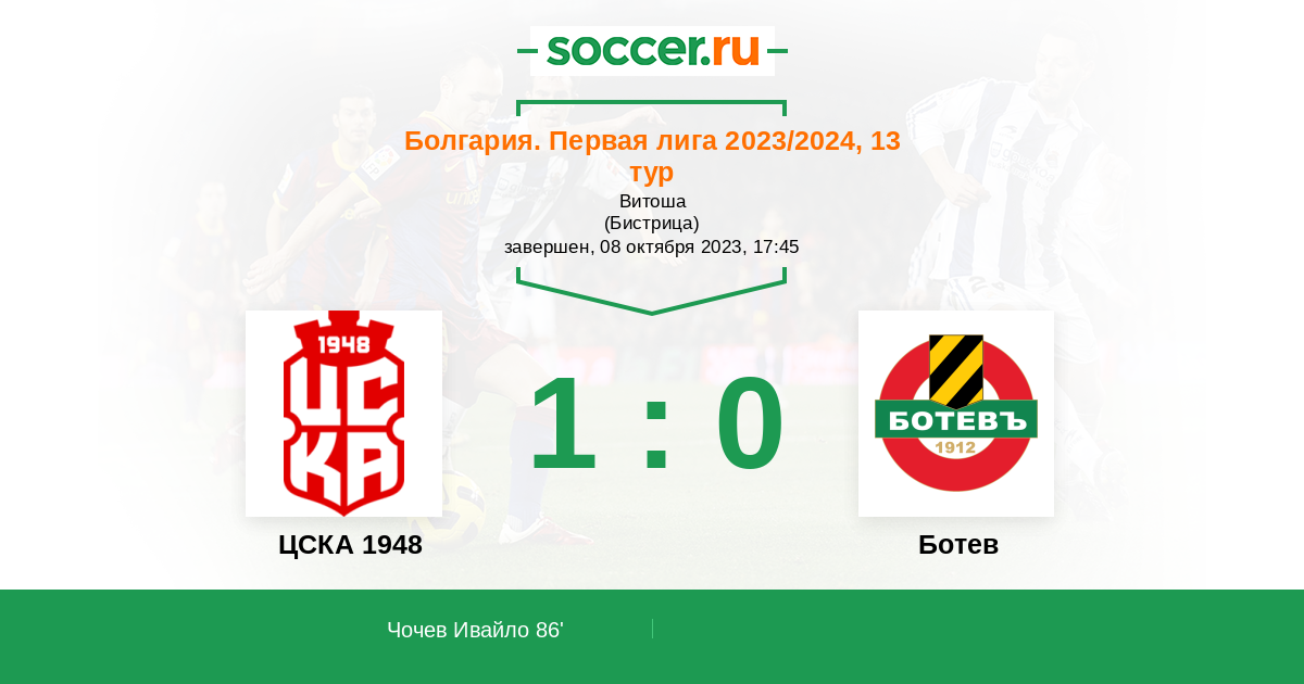| ЦСКА 1948 | 21:14 | 11:5 | 10:9 |