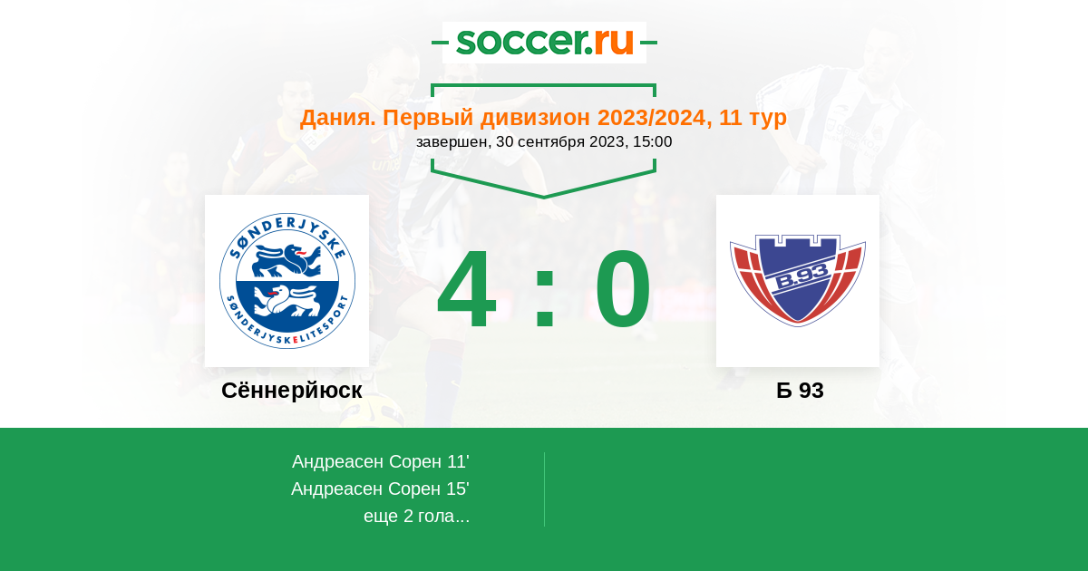 | Сённерйюск | 4:0 | 0:0 | 4:0 |
